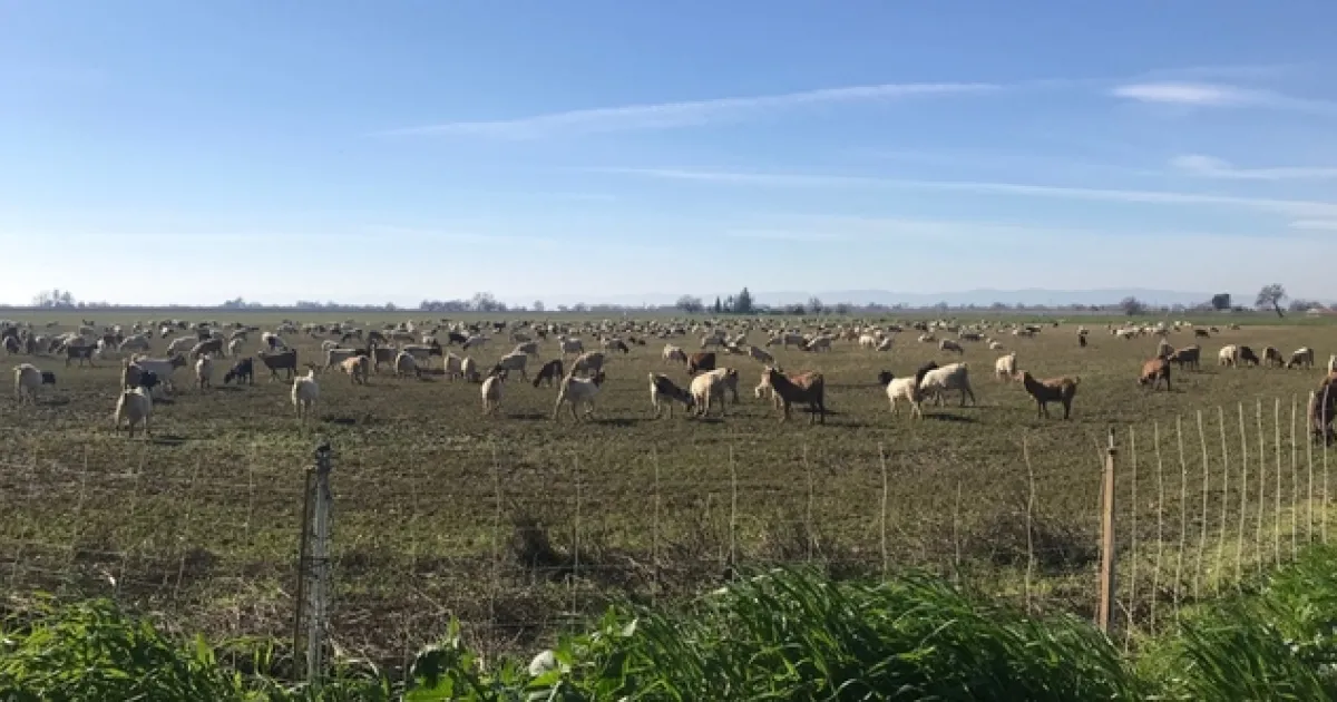 Managing Animals and Avoiding Bloat. This particular field had quite a bit of mature growth but also young sprouts coming up. "The bottom block of that field wasn't harvested late, so there was a lot of growth there, but also with a lot of harder, woodier stems" said Lee Hazeltine, who manages these goats in Yolo County. "We were also a little concerned about the younger growth coming up from below in terms of the risk for bloat, especially with the young lambs." The lambs may go directly to the younger growth, ignoring the more mature stems, increasing bloat risk. Goats tend to handle older, woodier stems a little better than lambs to, and are generally less prone to bloat. His purpose is to match the condition of the field to the types of animals he places there, whether sheep or goats.