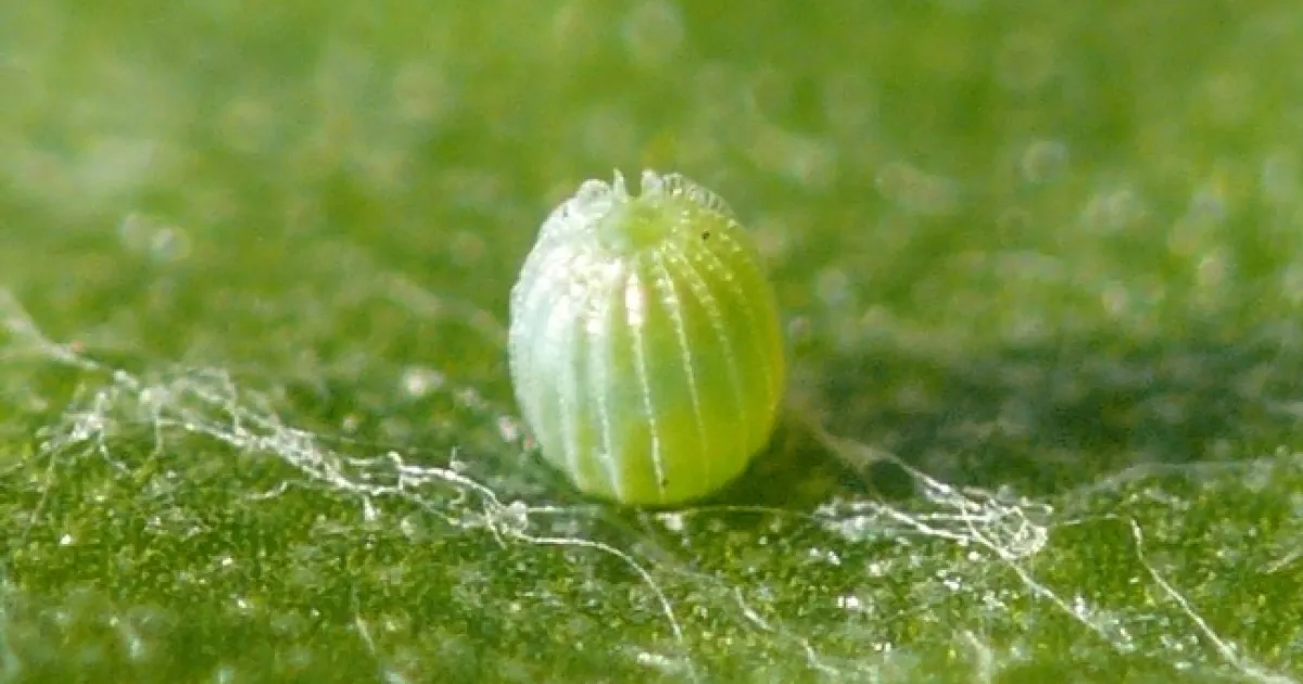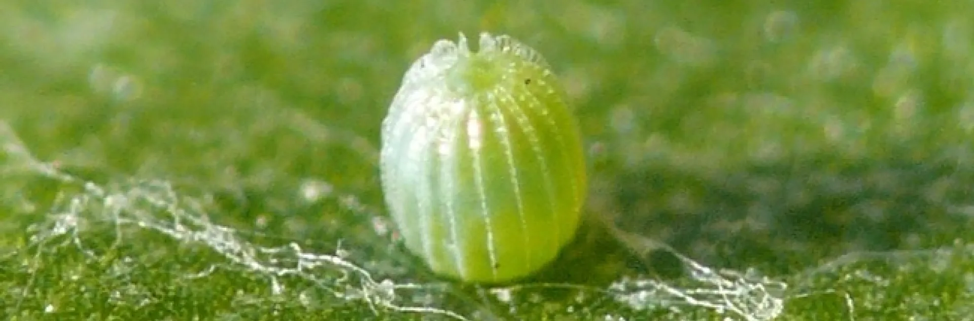 Identification: Painted lady larvae are variably colored as larvae, and while typically darker in color, range from almost black or purplish to nearly cream-colored or white (see here for color variation). They have many hairy, branched spines. Larvae develop rapidly and tend to use silk to pull leaves together form a loose shelter in which they can hide. These shelters will typically also have frass (insect excrement) associated with them. Eggs are laid singly on leaves and are cream to green and lined with vertical ridges