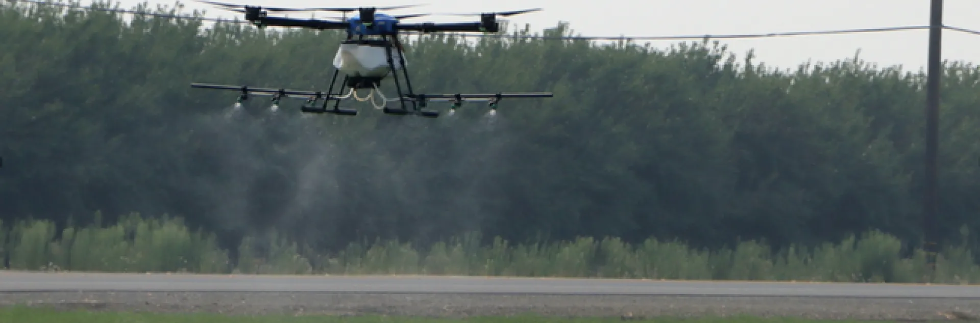 Drones are a viable option for aerial application of pesticides for pest control in alfalfa fields. Overall, there were no significant differences in insecticide spray coverage, Prevathon® insect control residue, and summer worm control between the drone and airplane insecticide application methods. Drones provide an additional tool for growers to manage pests and disease in their fields. California now has a specific UAV ("unmanned") ag pilot license category which means that the pilot of the drone is not required to have a commercial pilot certificate, only the UAV certificate.