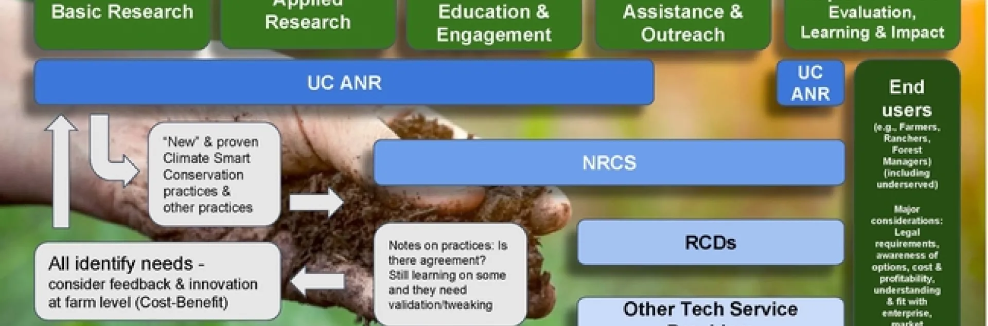 This week was very exciting with our Technical Assistance rollout webinar for those working on conservation. As mentioned previously, the Memorandum of Agreement for the California Conservation Partnership Planning (C2P2) was signed last year. Tuesday was our first meeting of the partner agency staff. CDFA, NRCS, CA RCD and UC ANR presented their areas of contribution to the agreement. UC ANR provides extension education and engagement, technical assistance (trough Climate Smart and Small Farms CES and academics), outreach, implementation, evaluation and impact analysis. Additionally, all members of the partnership can relay questions about practices back to UC for additional research. Basic and applied research will be identified and done (by UC ANR, Ag Experiment Station faculty, others at UC and through NRCS Conservation Innovation Grants). This provides a phenomenal feedback loop from asking driving questions to analyzing implementation to determine if practices meet desired goals and if they are cost effective. This is a terrific opportunity for staff at all agencies to understand each agency's superpower and identify who is better qualified to efficiently deliver technical services. It's possible that multiple agencies should participate in technical assistance.