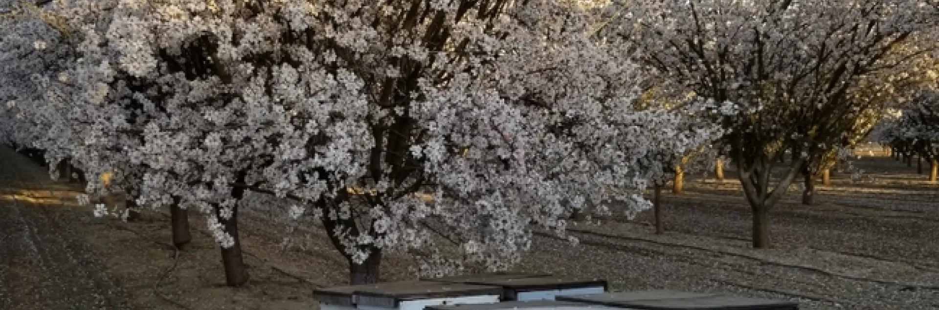 Beehives in orchard. Picture from 2021.