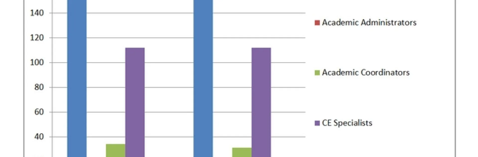 Headcount of CE academic titles, measured at the end of each quarter displayed.