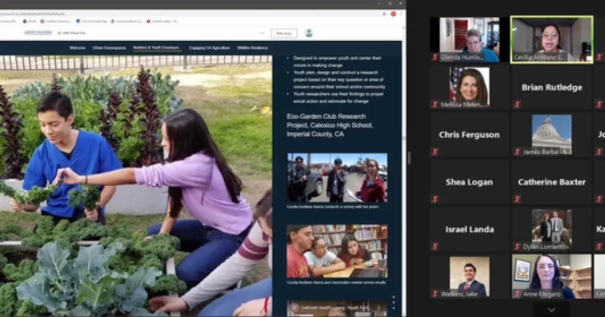 The tour opened with the We are UC ANR video and a map of UC ANR locations for background. Using short videos and photos, statewide program directors and UC ANR stakeholders showed the policymakers many of the ways UC ANR serves Californians. Other “tour stops” included highlights of UC ANR's impact on urban greenspaces, nutrition and youth development, California agriculture and wildfire resiliency.