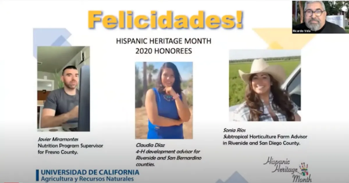 UC ANR is celebrating Hispanic Heritage Month Sept. 15 to Oct. 15. Each Friday during the celebration, Ricardo Vela, manager of News & Information Outreach in Spanish, is hosting online forums.
