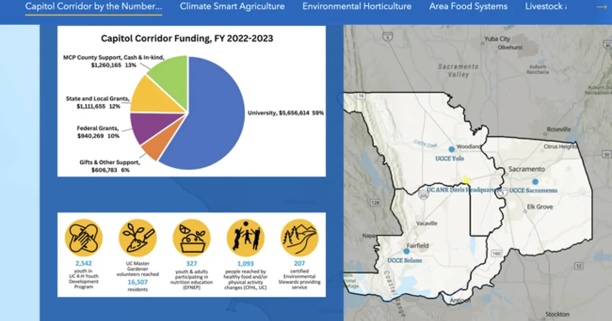 "Story maps have proven to be a fantastic tool with an easy learning curve, making it accessible and straightforward to use,” said Nicholle Stein-Peterson, who created the UCCE Capital Corridor Annual Report Story Map. “Moving away from the typical multi-page PDF was a refreshing change, and it made the process even more enjoyable. The enthusiastic feedback we've received has been truly motivating. I loved how, with minimal customization options, it allowed our annual report to look consistently polished and aligned with our brand.”