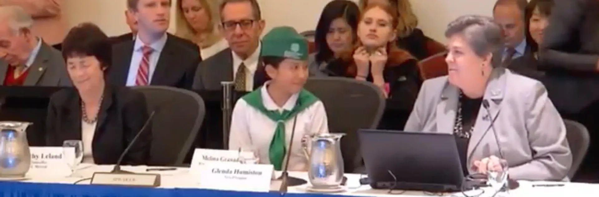 UC VP Glenda Humiston, 4-H member Melina Granados of Riverside County and UC Merced Chancellor Dorothy Leland gave the UC regents a presentation about UC ANR's community outreach and impact. The Public Engagement & Development Committee meeting was held at the UCSF–Mission Bay Conference Center on Jan. 24, 2018, in San Francisco.
