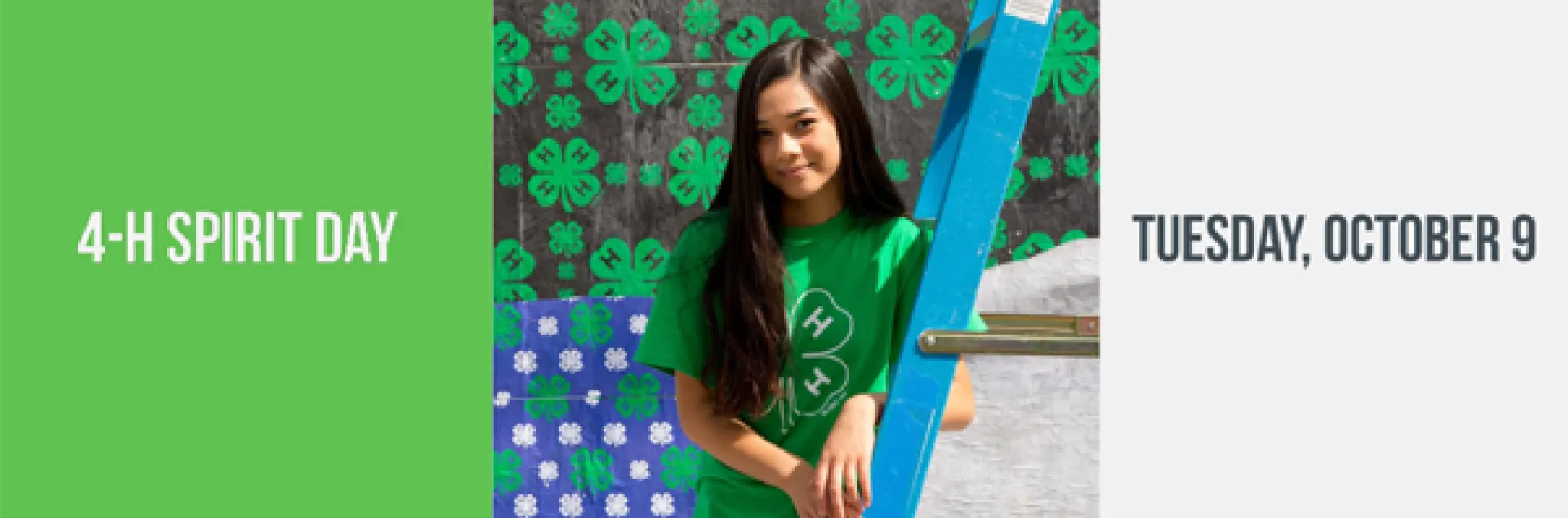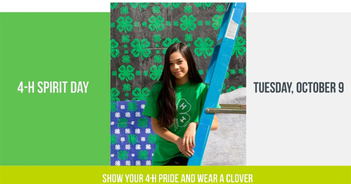 During National 4-H Week 2018, Tuesday, Oct. 9 is 4-H Spirit Day. Nationwide, everyone is encouraged to wear their 4-H shirt, a clover or green to show support for 4-H.