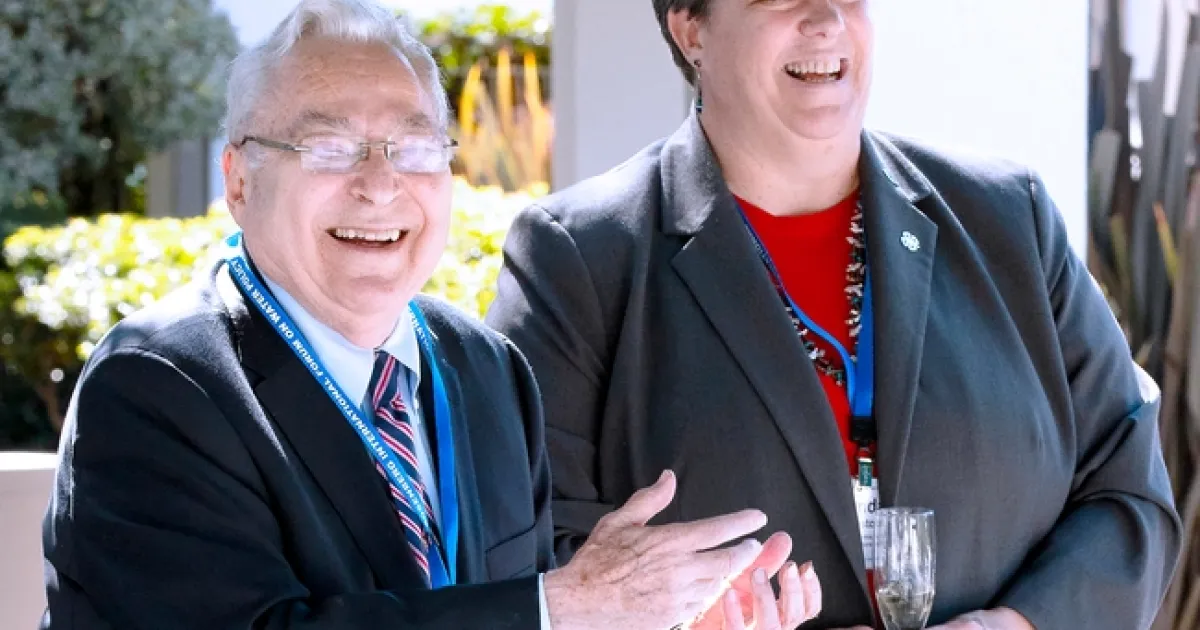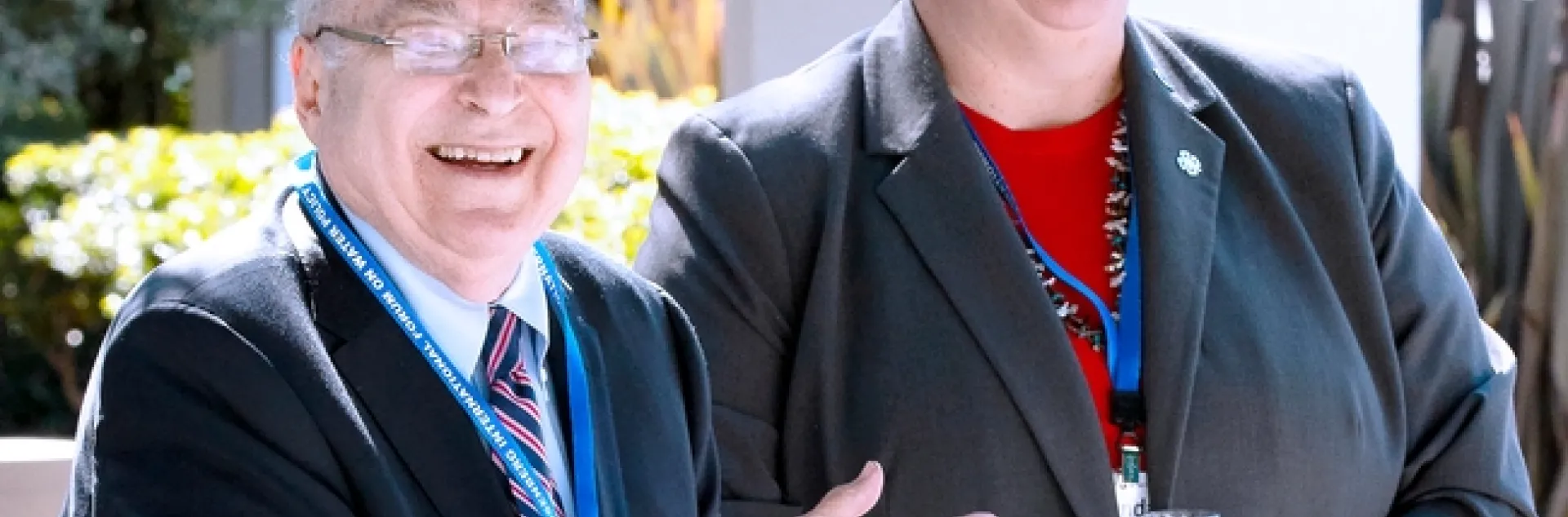 Richard Rosenberg, left, with Glenda Humiston. People laughed when Rosenberg stated the purpose of the forums was conflict resolution. Although there are many water wars in the world, he contended a couple were solved by people meeting at the forum.