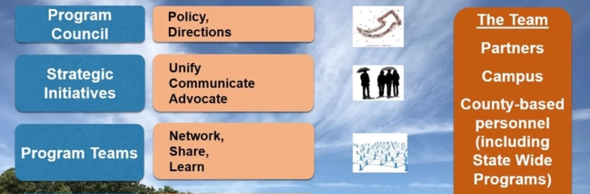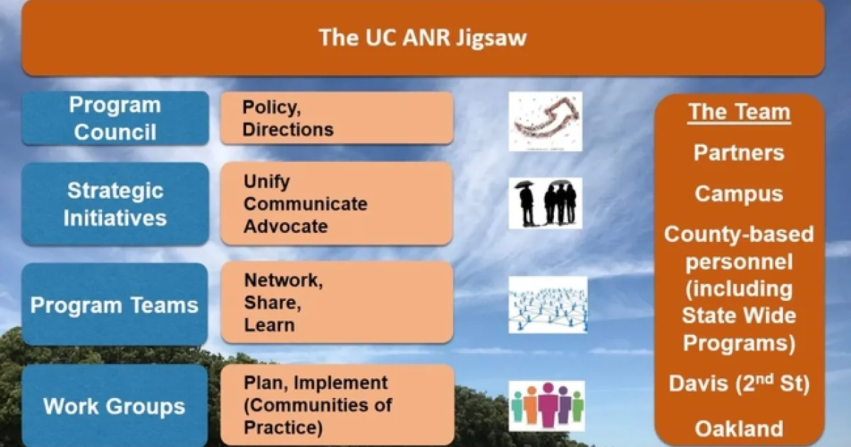 For more information about how workgroups, program teams and strategic initiatives fit together, see https://ucanr.edu/sites/StrategicInitiatives/files/295191.pdf.