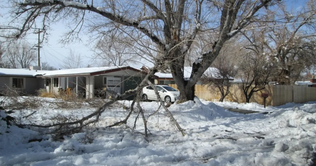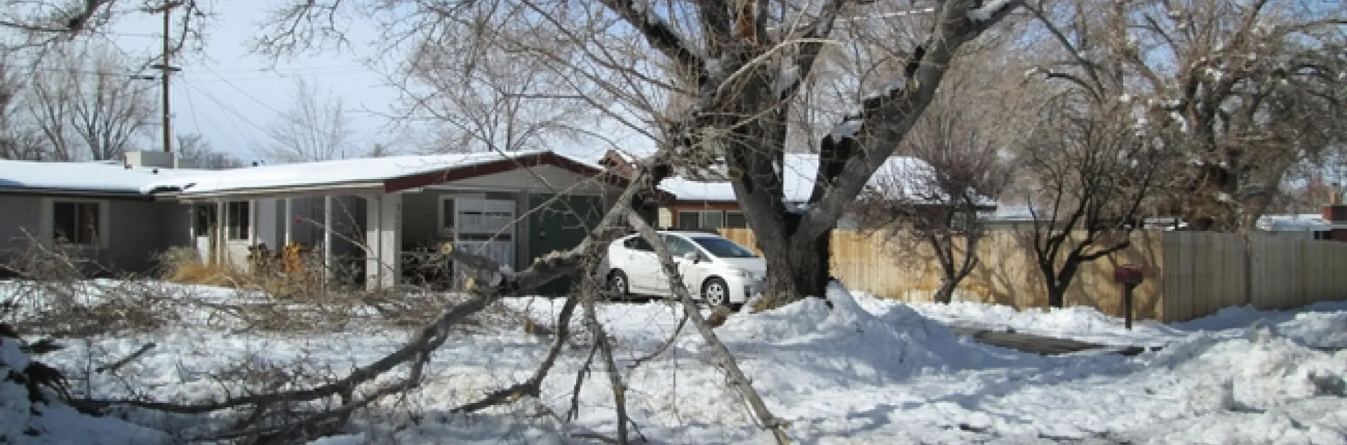 Many trees that were originally planted in tract housing frontages in the 1960's are now 60 years old and have suffered abuse from improper pruning and neglect. In the area where I live, mulberries and ash trees were planted extensively, and repeated topping has caused many of them to produce poorly attached limbs which failed with the weight of snow. In one short road 5 mulberry trees and a cedar lost large branches!