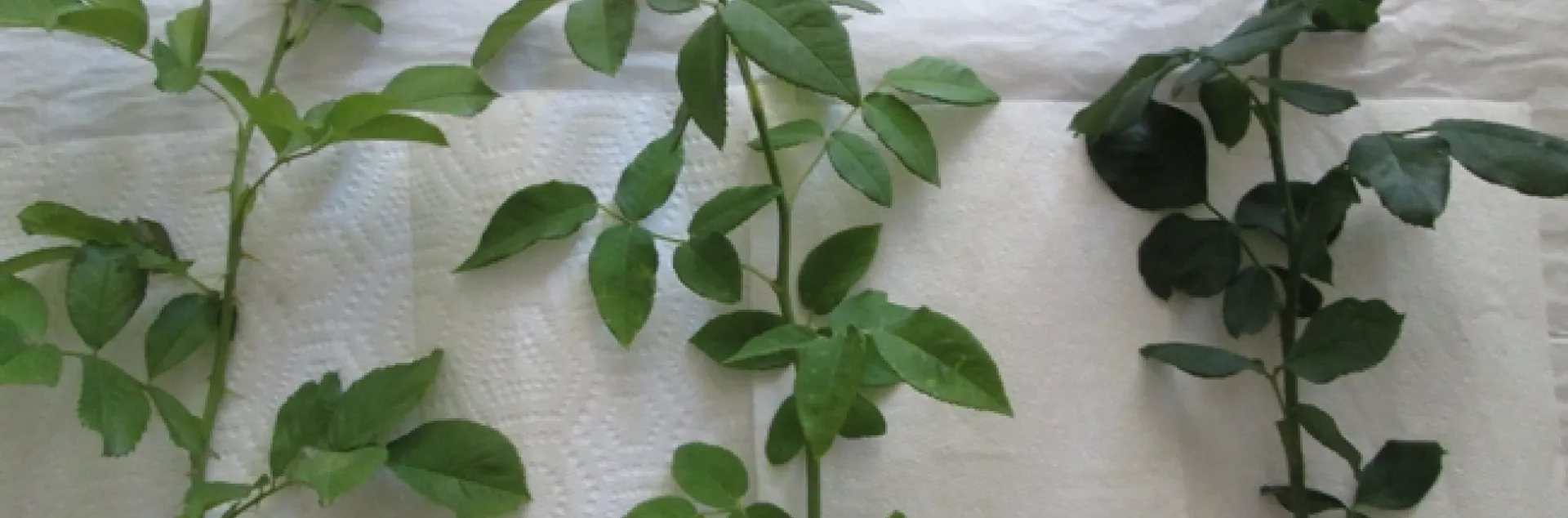 - A well-grown current year's stem that has finished flowering about 8” long for a hybrid tea rose, or 4”-5” for smaller landscape roses. It should be healthy, disease free, green and slightly flexible but not floppy, and should ideally have 4-5 leaf nodes. Place the bottom in water immediately after cutting. Old, woody stems are challenging to root.