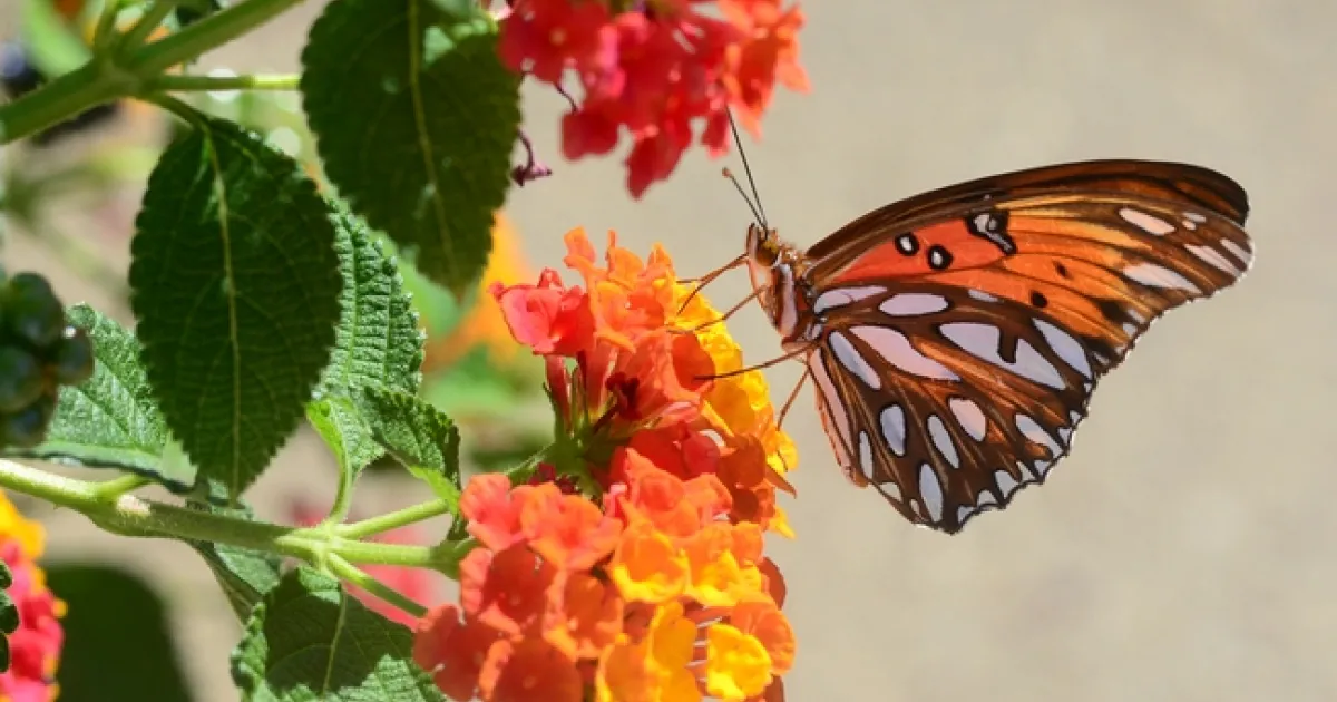 One of the Gulf Frit's favorite nectar sources is lantana (genus Lantana, family Verbenaceae.)