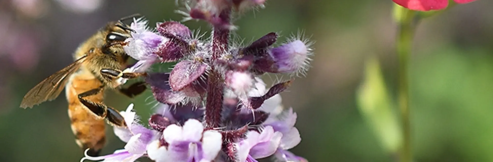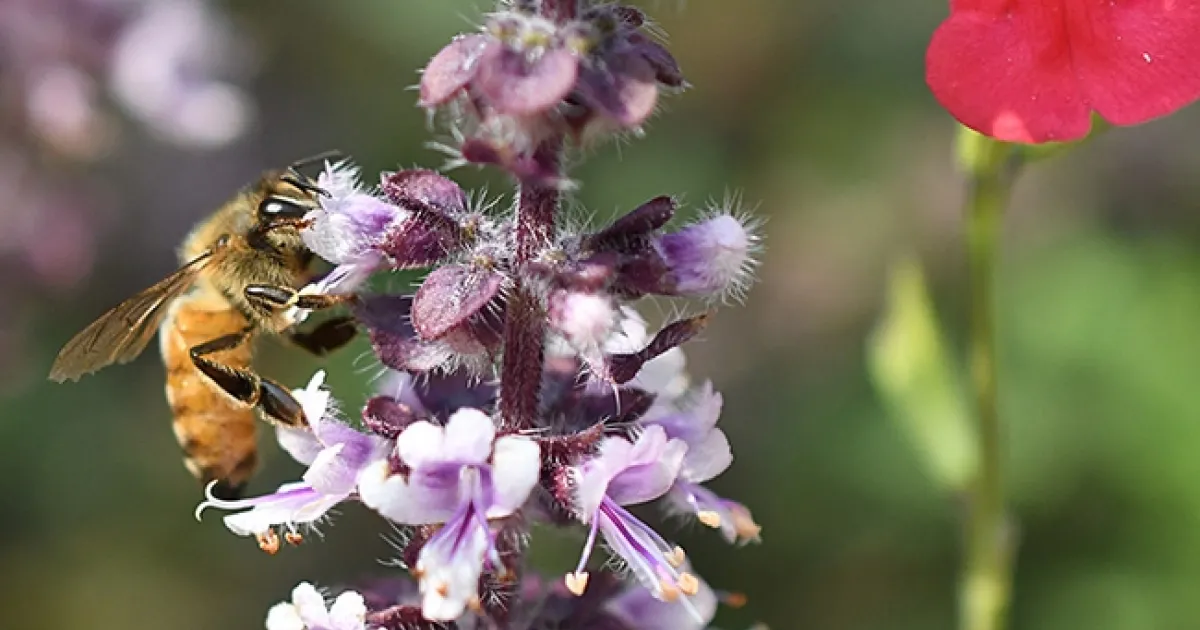 Such was the case in Vacaville this week when we were watching honey bees forage in our African blue basil, a bee magnet that we plant annually. We first learned of African blue basil, (Ocimum kilimandscharicum × basilicum 'Dark Opal'), through Gordon Frankie, UC Berkeley professor and the late Robbin Thorp, distinguished emeritus professor of entomology at UC Davis. They co-authored the book, California Bees and Blooms: a Guide for Gardeners and Naturalists (Heyday Books) with Rollin Coville and Barbara Ertter, also affiliated with UC Berkeley.