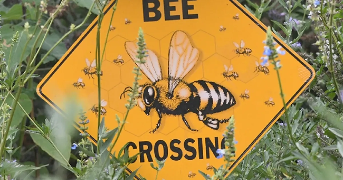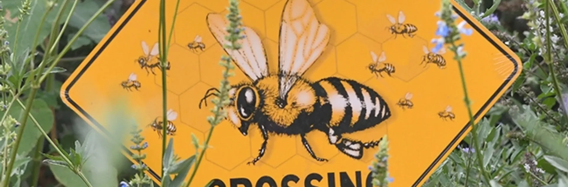 When you have a "Bee Crossing" sign in your pollinator garden, odds are that bees will cross right in front of that sign.