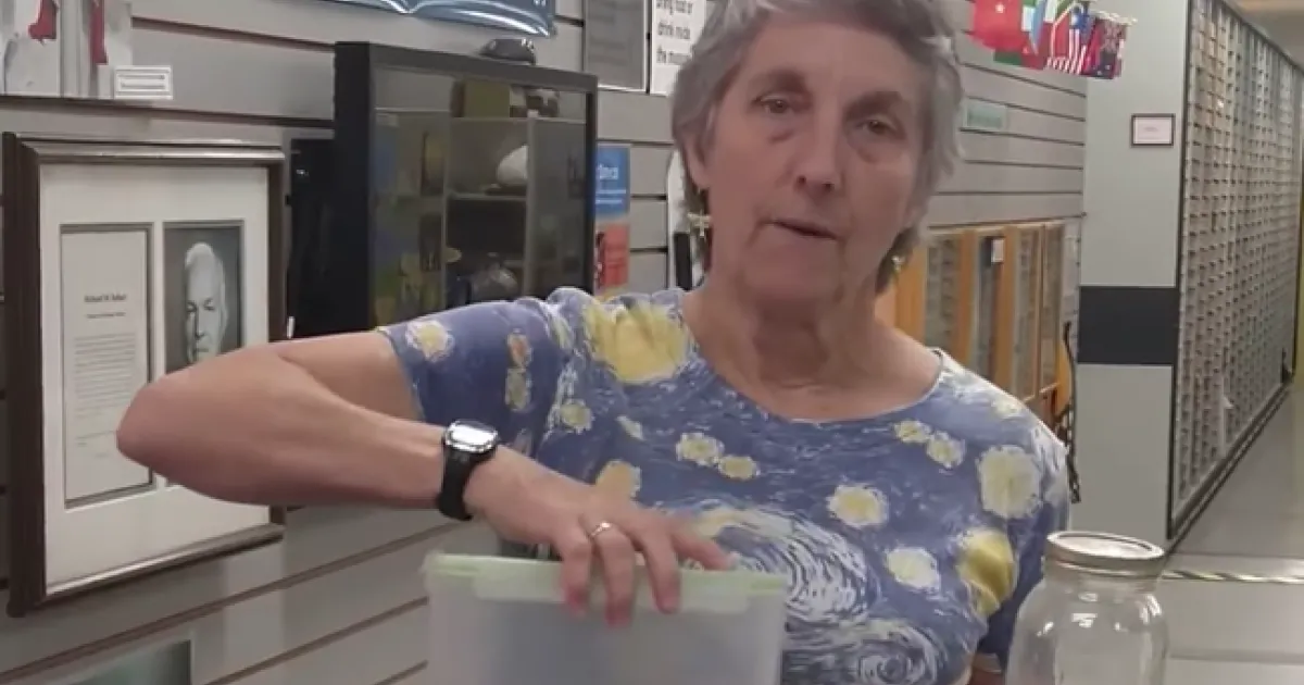 UC Davis professor Lynn Kimsey, director of the Bohart Museum of Entomology, shows how flour and cereal should be stored. (Screen shot from her presentation on YouTube.)