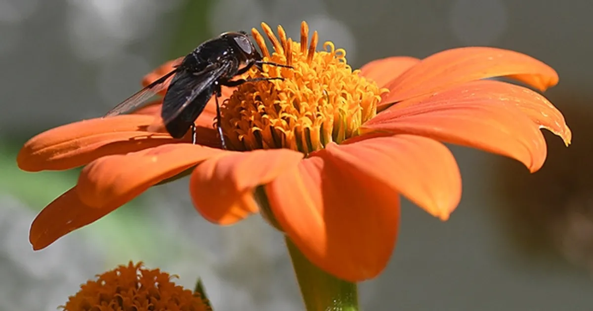The Mexican cactus fly simply stopped to sip some nectar from the Mexican sunflower.