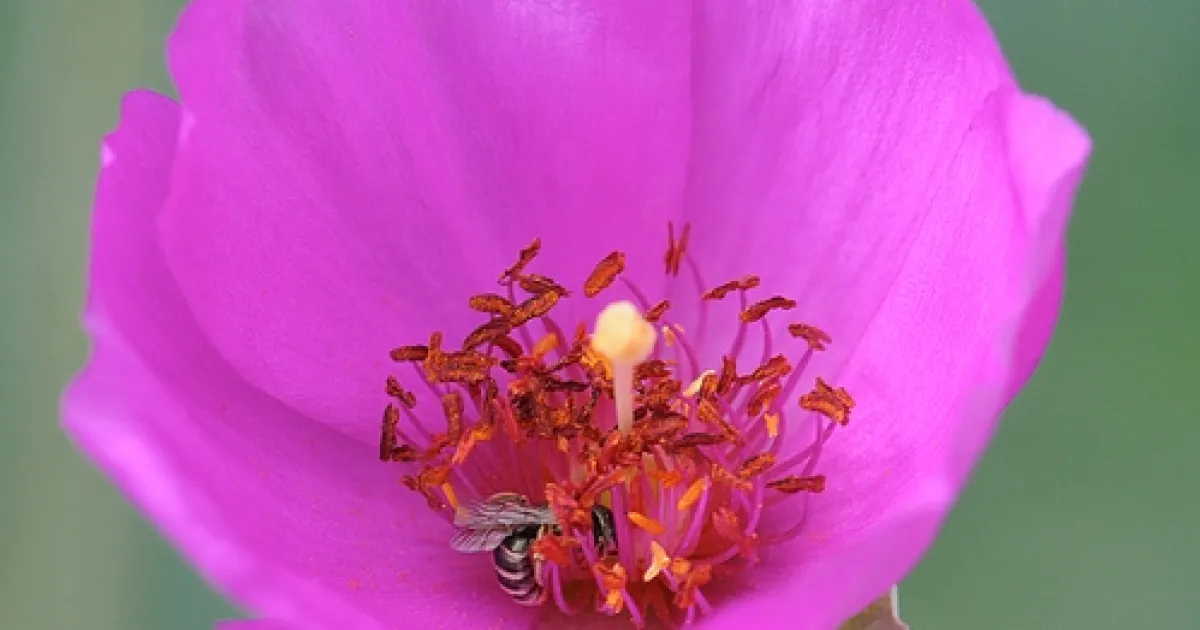 You'll often see tiny sweat bees nectaring rock purslane (Calandrinia grandiflora) in urban gardens. This plant, a native of Chile, brightens landscapes with its pinkish magenta blossoms.