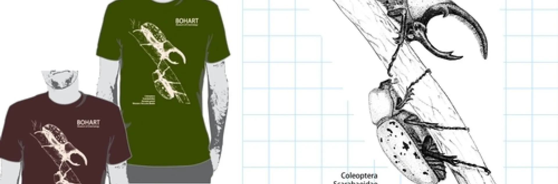 Funds generated from these beetle T-shirts will help provide continuing undergraduate support and training at the Bohart Museum.