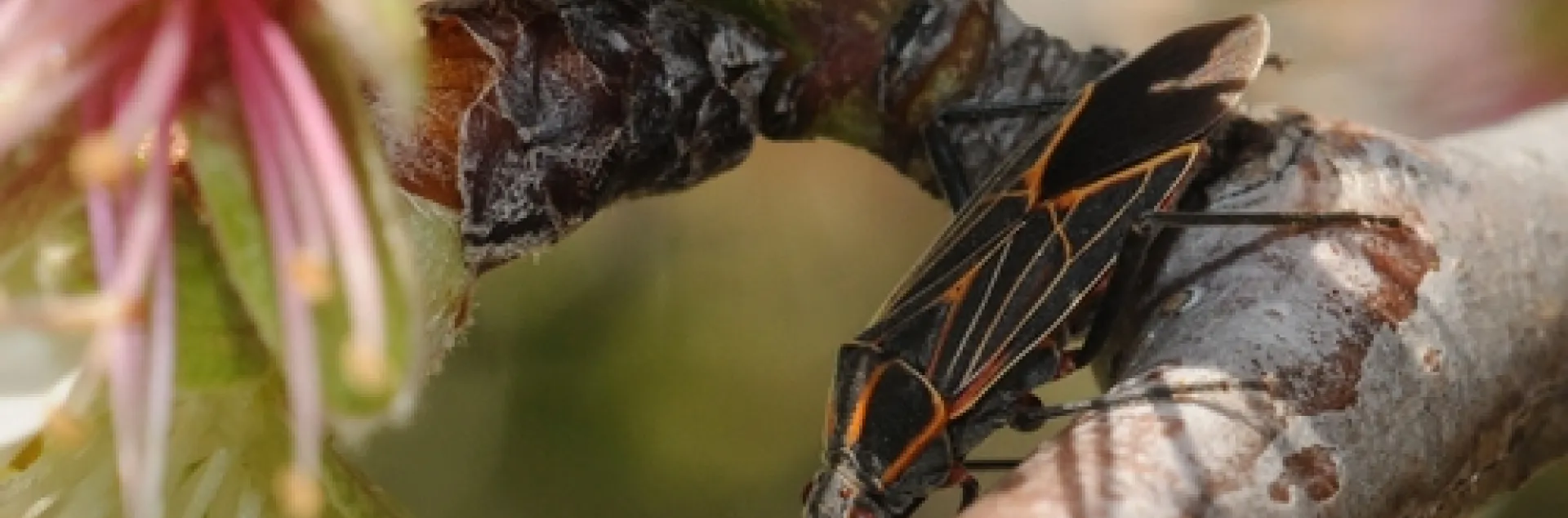 Meanwhile, scientists at the Laidlaw facility plan to examine the diversity of insects already there. One insect we saw there last week was a soapberry bug on a flowering almond tree.