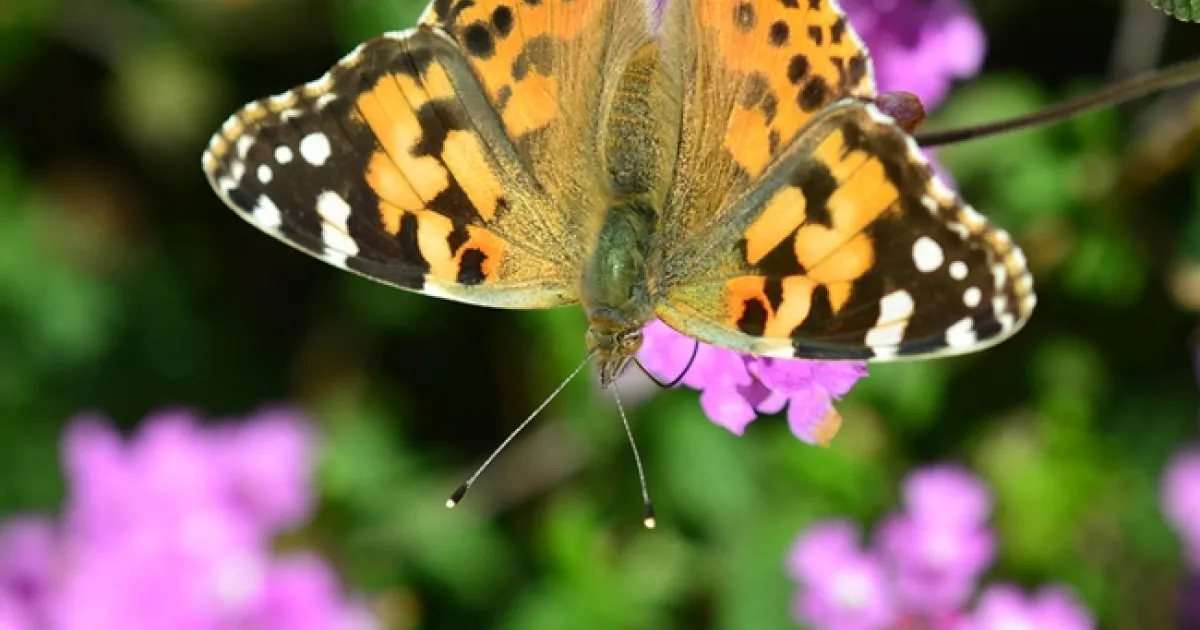 A Painted Lady (Vanessa cardui) nectaring on lantana on Black Friday. (Photo by Kathy Keatley Garvey)