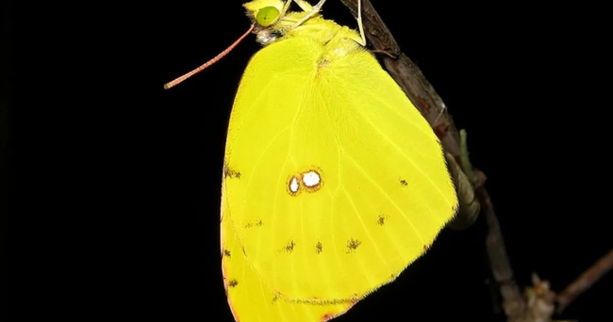 This is a California dogface butterfly eclosing from its chrysalis. (Reared and photographed by Greg Kareofelas)