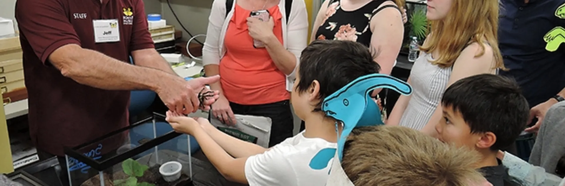 Who wouldn't, when you get an opportunity to pet a rose-haired tarantula named Snuggles, guide walking sticks "strolling" on your arm, or cradle a Madagascar hissing cockroach? Or marvel at the display of Platypsyllus castoris, an ectoparasite of beavers?