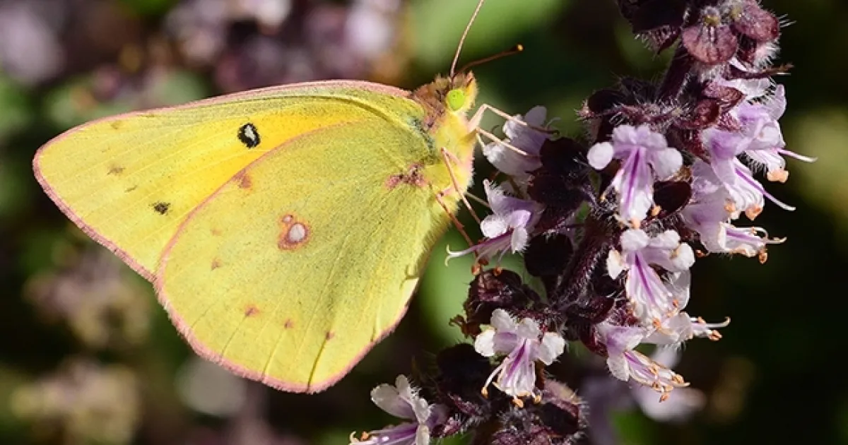 The sulphur butterfly, also known as the orange sulphur or alfalfa butterfly, is yellow or white. In its larval stage, it is a major pest of alfalfa.