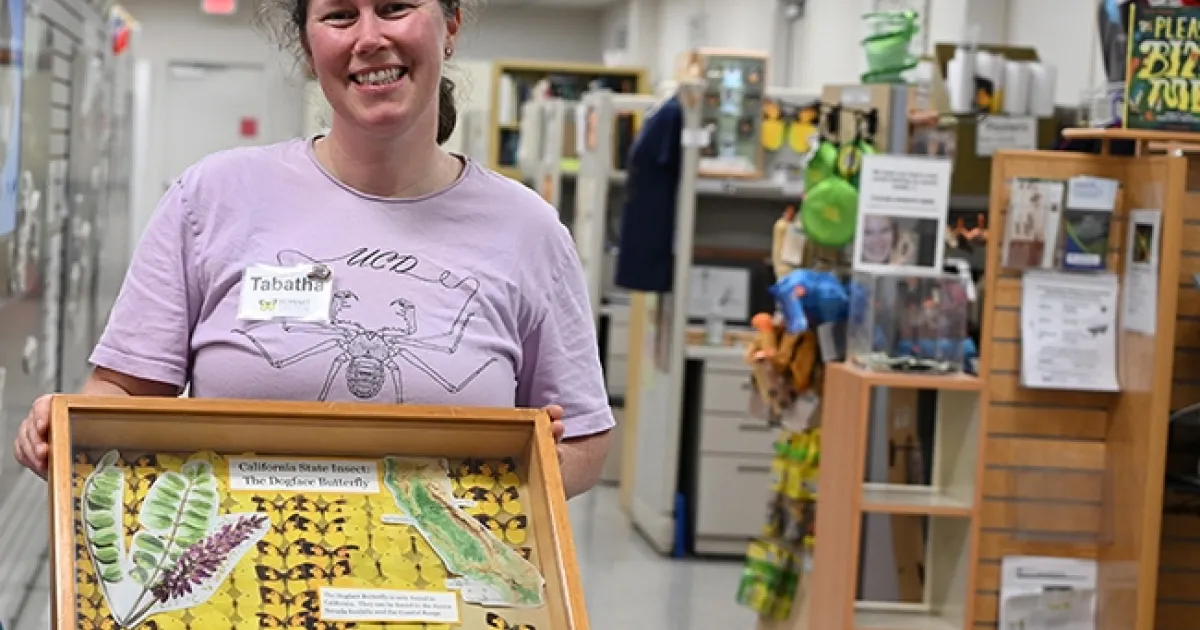 Tabatha Yang, education and outreach coordinator of the Bohart, has donated a drawer of the specimens for visitors to see. They can also pose in a cutout of the Bohart Museum's California dogface butterfly banner. And thumb through a 35-page children's book, "The Story of the Dogface Butterfly," written by UC Davis doctoral alumna Fran Keller, a professor at Folsom Lake College and a Bohart Museum research scientist. The book includes images by Kareofelas and Keller. Laine Bauer, then a UC Davis student, contributed the illustrations.