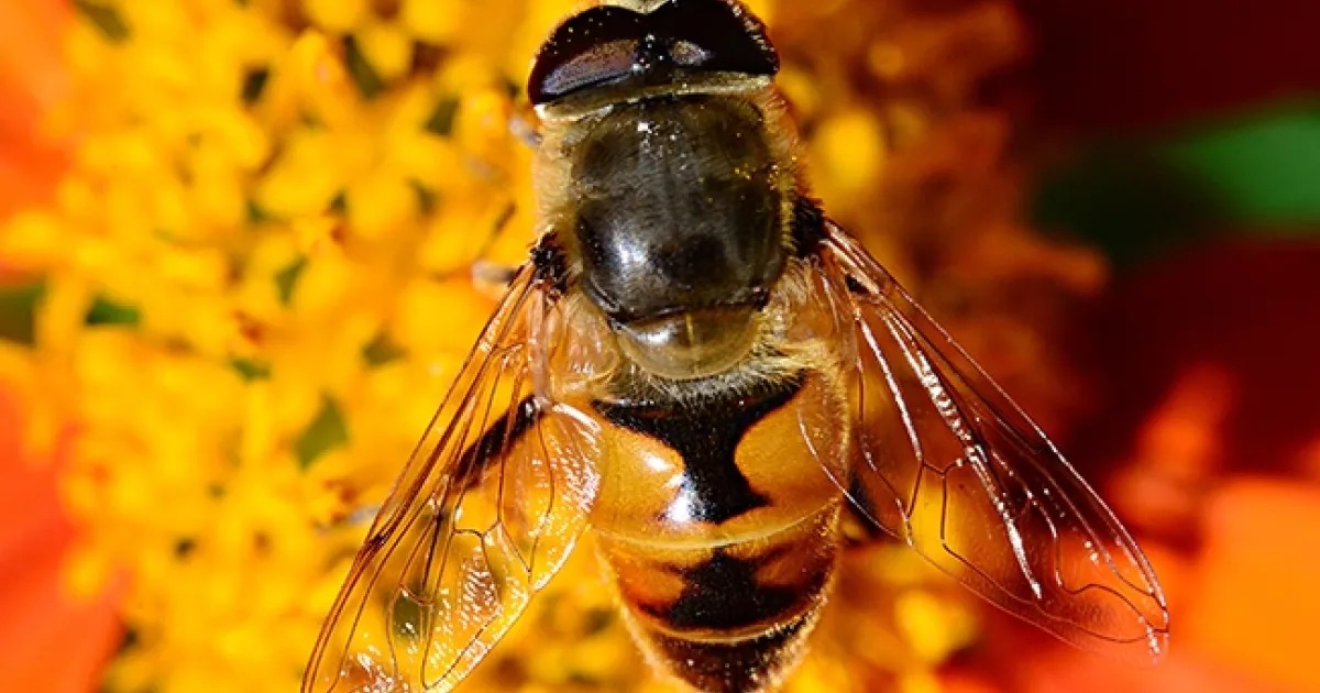 Meet the drone fly (Eristalis tenax), often mistaken for a honey bee.