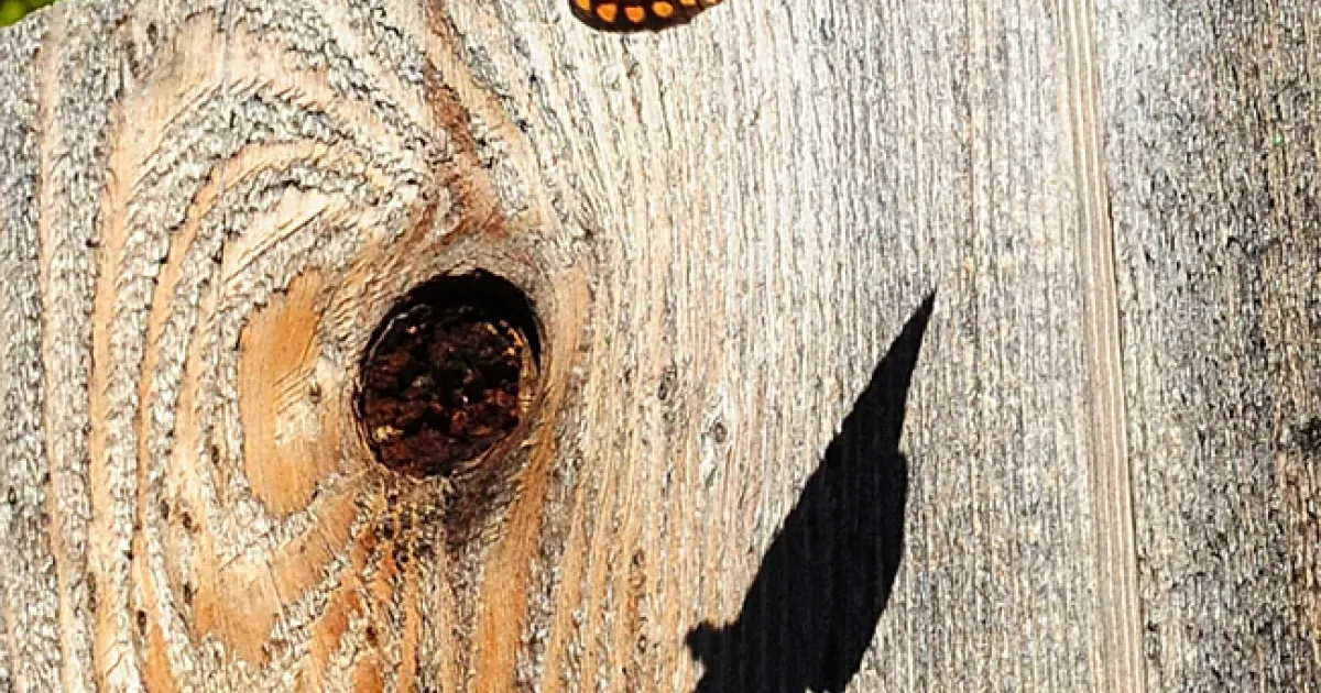 Gulf Fritillary, Agraulis vanillae, casts a shadow. (Photo by Kathy Keatley Garvey)