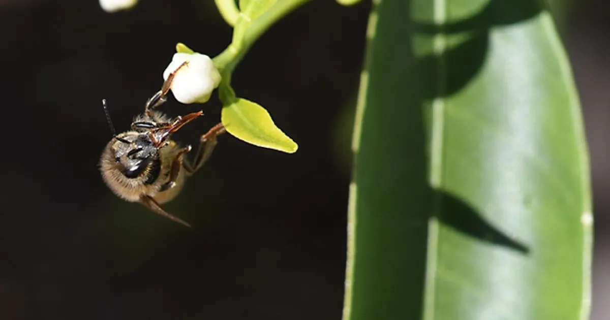 So here you are, a honey bee seeking nectar from an unopened citrus blossom.
