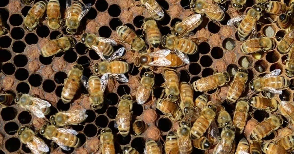 Inside a honey bee colony. (Photo by Kathy Keatley Garvey)
