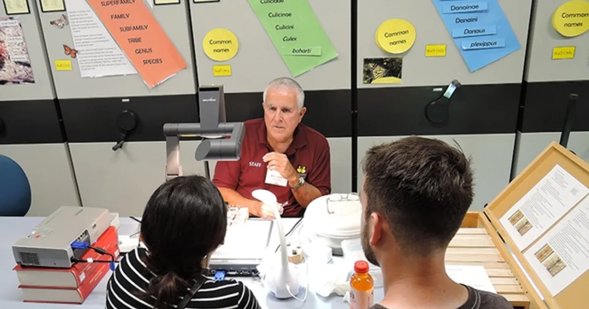 "I've been managing the butterfly moth collection for the last 32 years," he says. "And much of what I do has to do with spreading the wings of butterflies and moths so that they're ready and available to be identified."