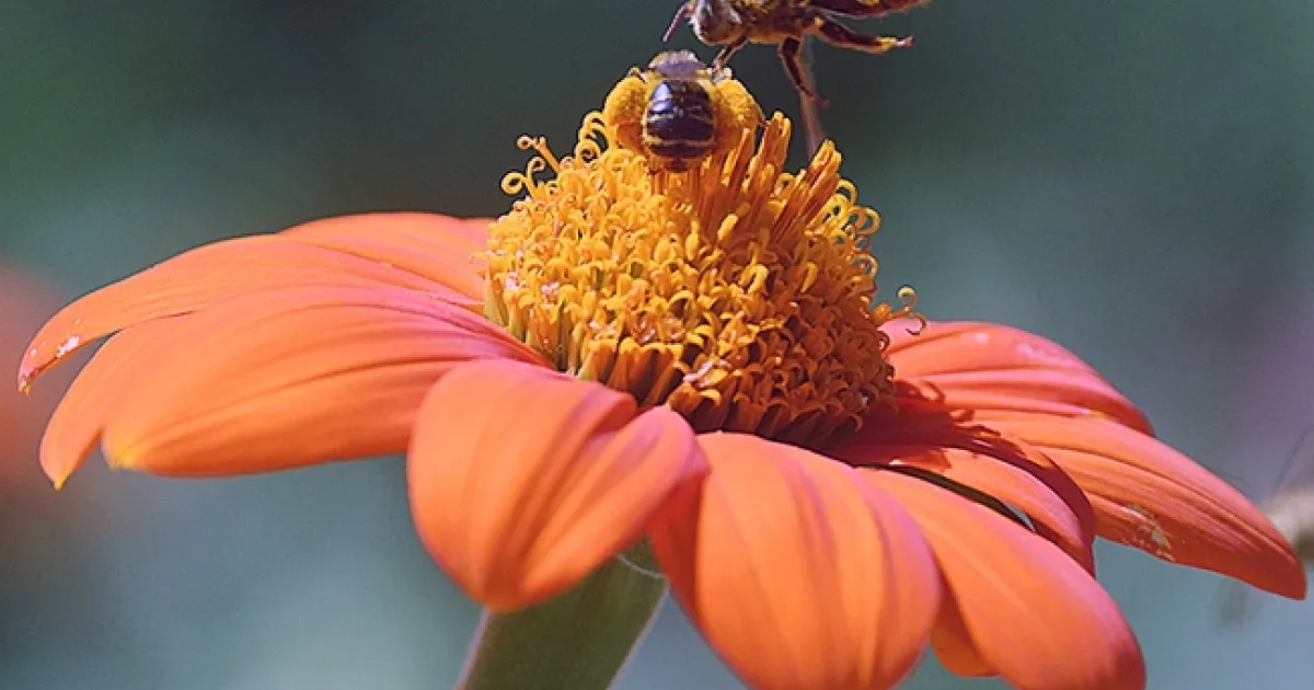 Such is the case in our family's pollinator garden as the activity on, around, above and below the Mexican sunflowers (Tithonia rotundifola) becomes fast and furious.