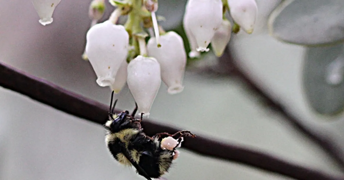 On Thursday, Jan. 10 doctoral student Kim Chacon photographed a black-tailed bumble bee, Bombus melanopygus, on manzanita blossoms in the UC Davis Arboretum and Public Garden.