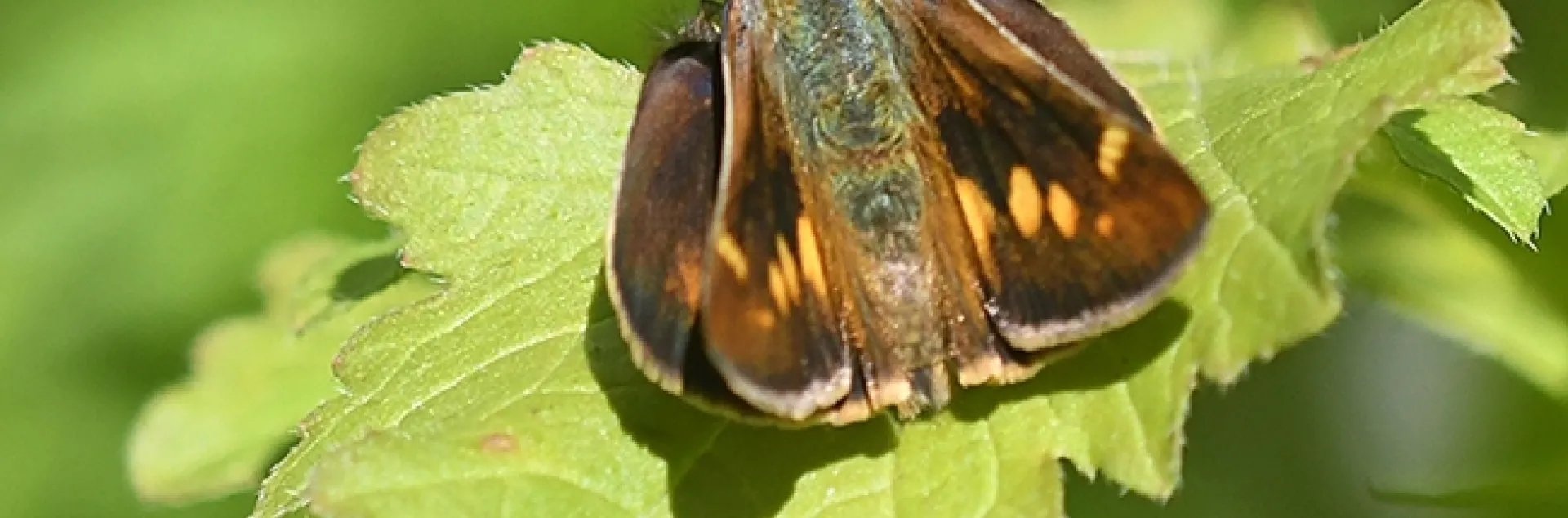 Butterfly guru Art Shapiro, UC Davis distinguished professor of evolution and ecology, identified it as an "Umber Skipper, Poanes melane, a riparian species I haven't seen at any of my sites yet! It typically flies first in early to mid-April."