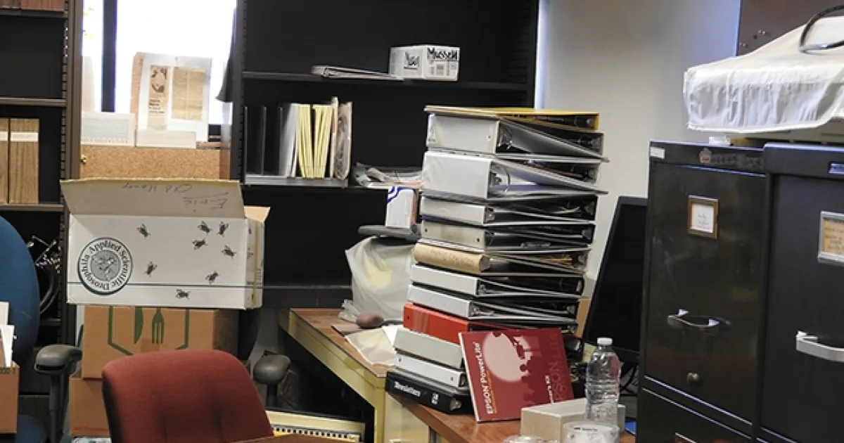 This was part of Extension apiculturist emeritus Eric Mussen's office, ready to be moved. (Photo by Kathy Keatley Garvey)