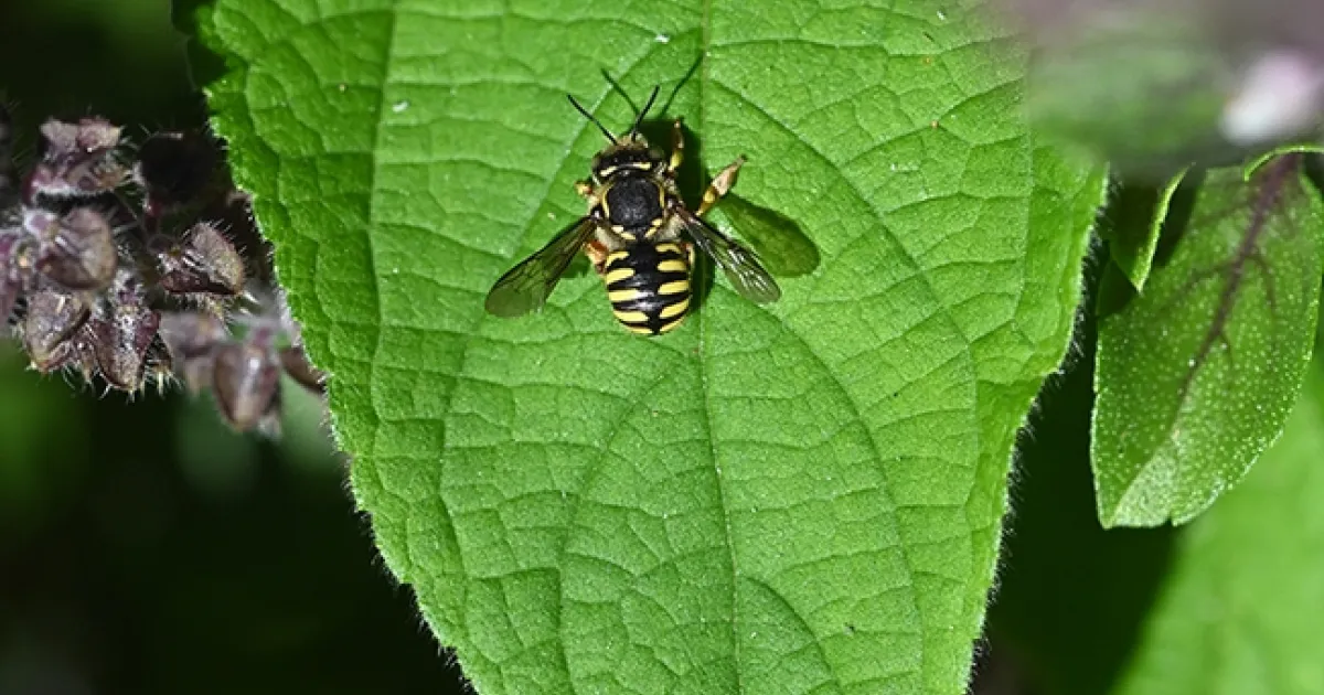 Natives of Europe, they were named "carder bees" because the females collect or "card" plant hairs for their nests. The bees, about the size of honey bees, are mostly black and yellow. The females range in body length from 11 to 13 millimeters, while the males are 14 to 17 mm. The males are very territorial as they protect their turf and bodyslam other insects.