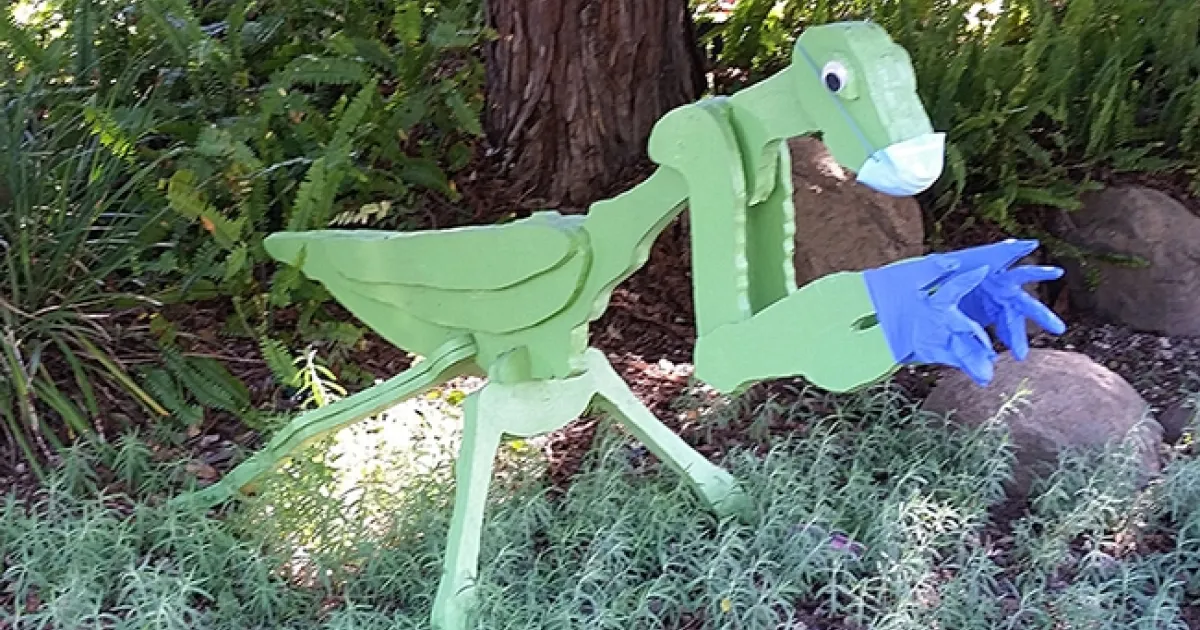 It's a coronoavirus-equipped mantis, complete with gloves and a face mask.