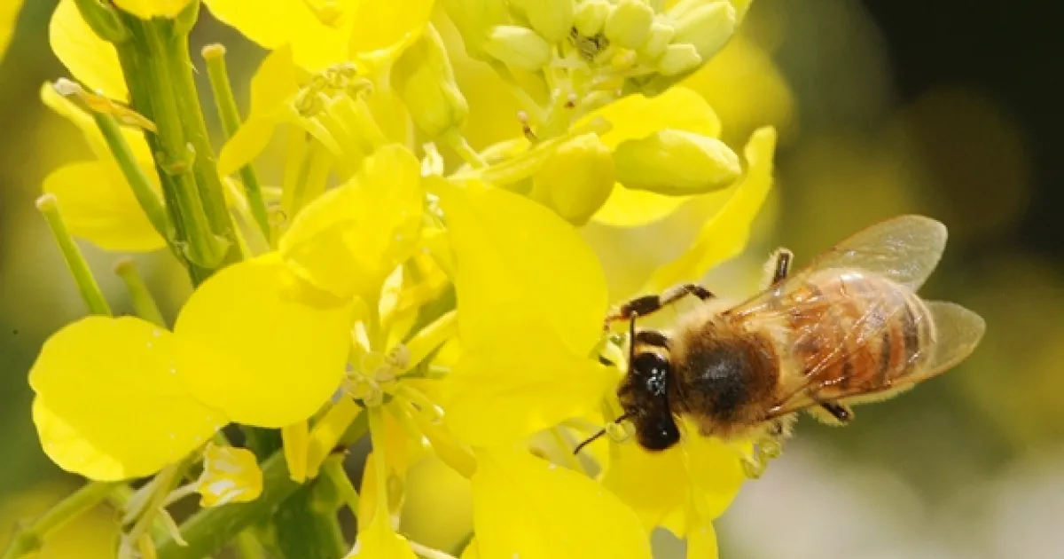 Honey bee foraging on mustard. (Photo by Kathy Keatley Garvey)