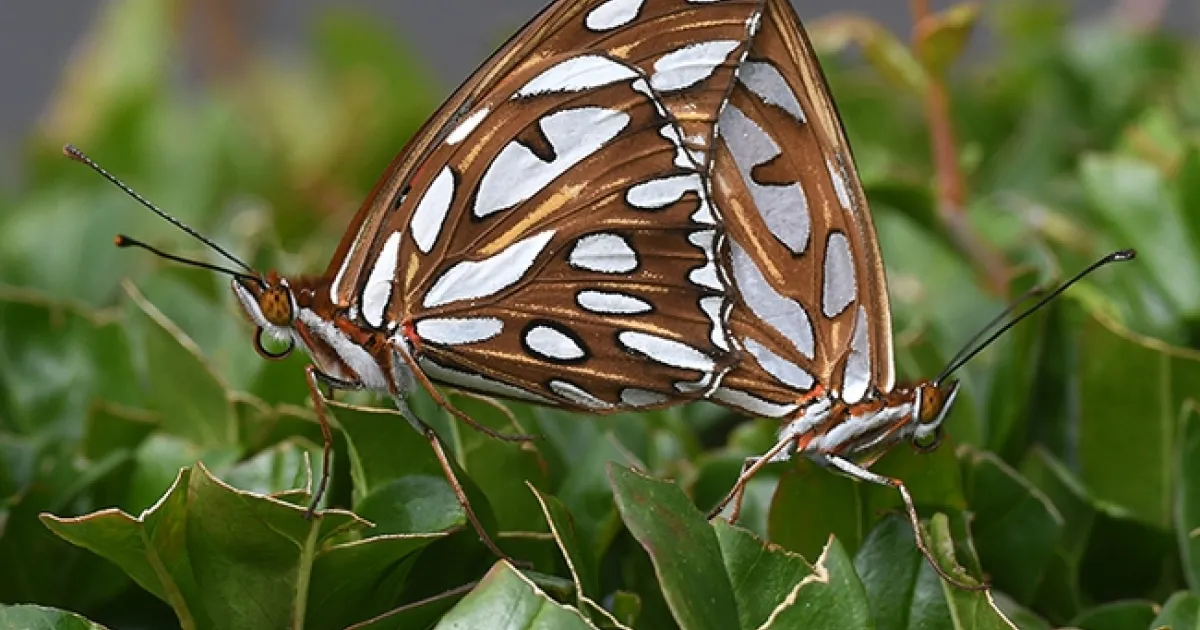We usually see Gulf Frits on their host plant, the passionflower vine (Passiflora), where the females lay their eggs. and the cycle of eggs-to-caterpillars-to-chrysalids-to-adults continues.