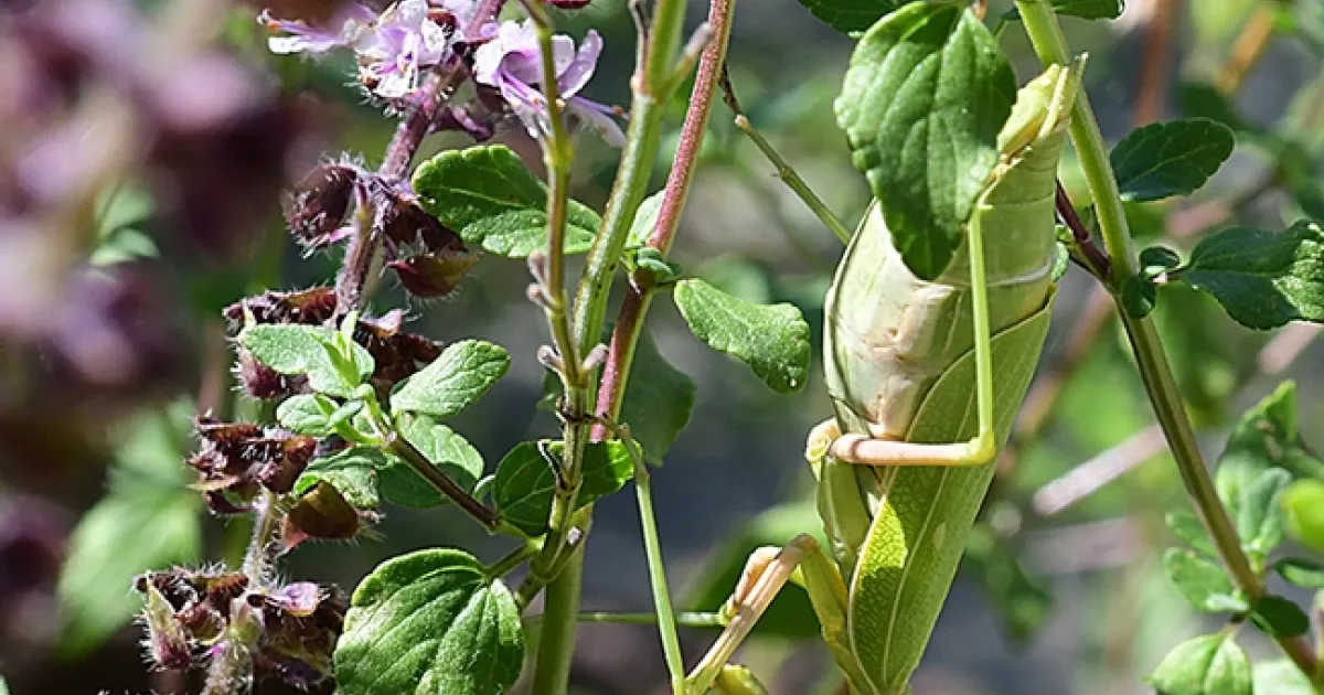 Find the praying mantis! This is a female gravid Stagmomantis limbata. (Photo by Kathy Keatley Garvey)