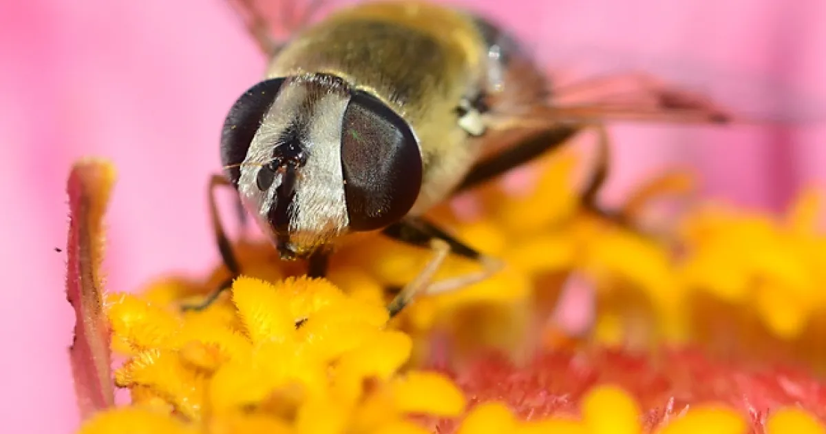 Close-up of a fly, genus Eristalis, on a flower. (Photo by Kathy Keatley Garvey)