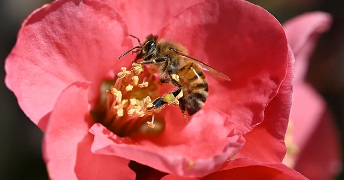 Spring won't arrive until March 19, but don't tell that to the honey bees foraging on the flowering quince.