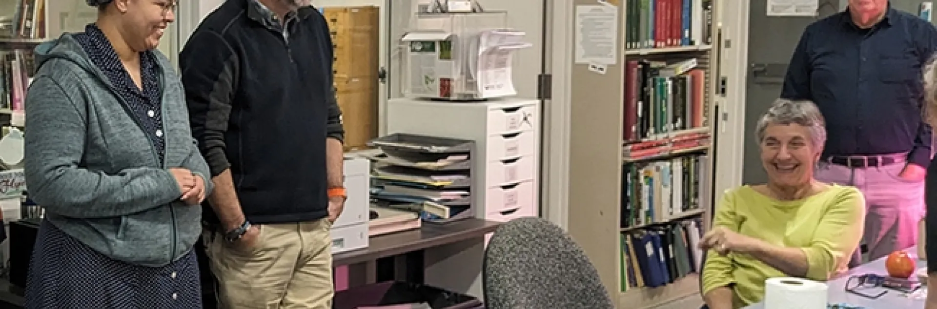 The Bohart Museum staff celebrated her birthday today. "I'm 71," she said. (And yes, it's okay to print that.)