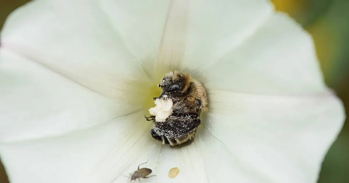 The bees, also known as digger bees or chimney bees, are specialists on bindweed, commonly known as morning glory. “The females use pollen only from one plant species and are active through the late spring and early summer,” said Vannette, an international leader in microbial ecology who studies interactions between plants, insects and microbes.