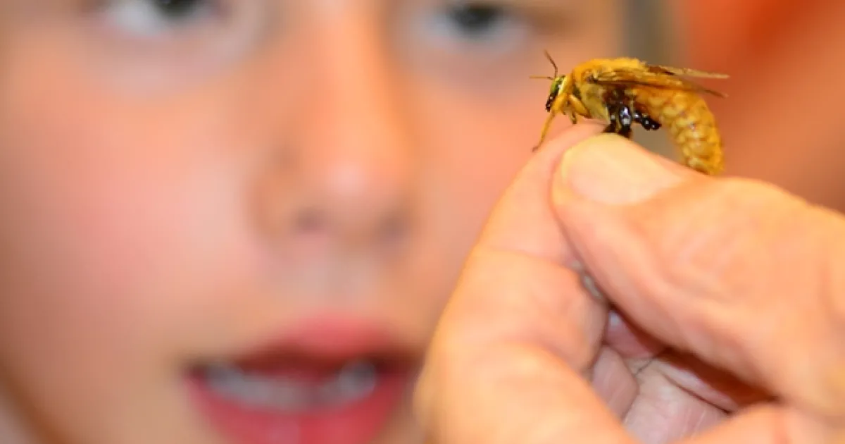 Native pollinator specialist Robbin Thorp, emeritus professor of entomology at UC Davis, provided information to wide-eyed youngsters as he held the golden carpenter bees, what he calls "the teddy bear bees." They look and feel soft and cuddly, just like a teddy bear.