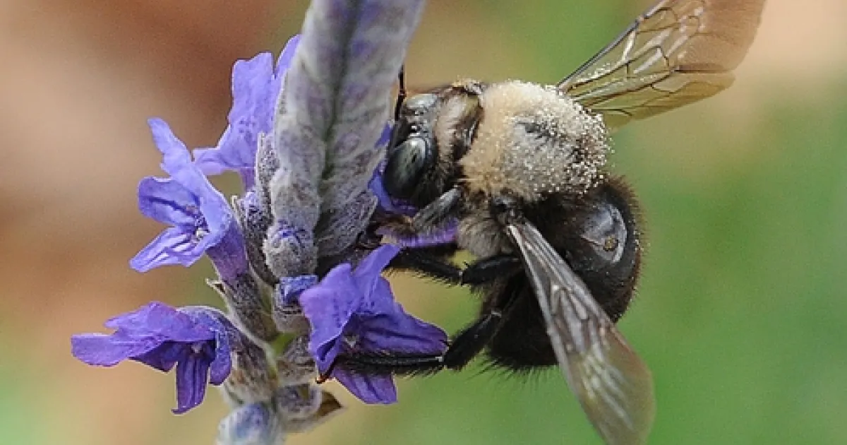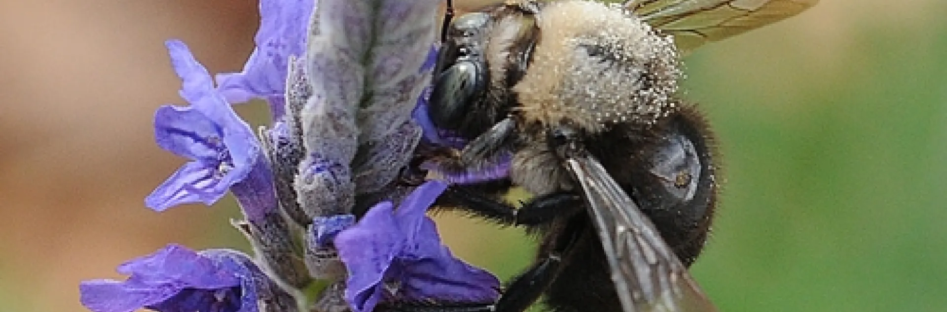 A male carpenter bee (Xylocopa tabaniformis) nectars on lavender. (Photo by Kathy Keatley Garvey)