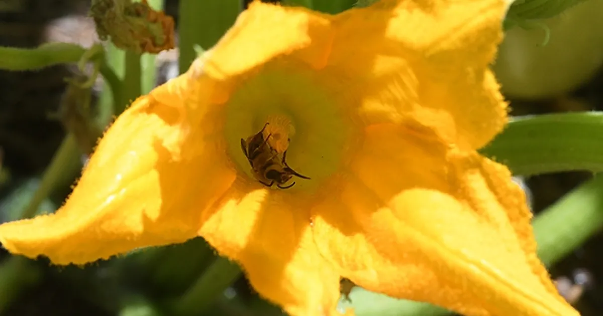 Unlike honey bees, which are generalists, squash bees are specialists. They pollinate only members of the cucurbits or squash family, Cucurbitaceae, which includes pumpkins, squash, gourds, cucumbers and zucchini.