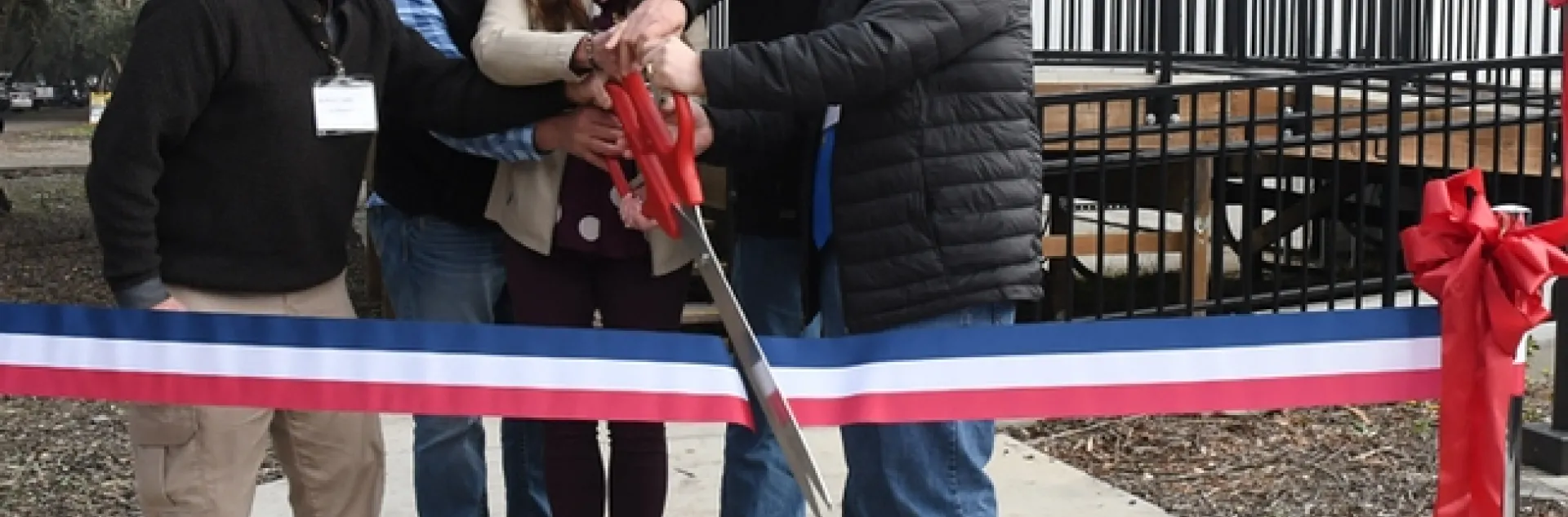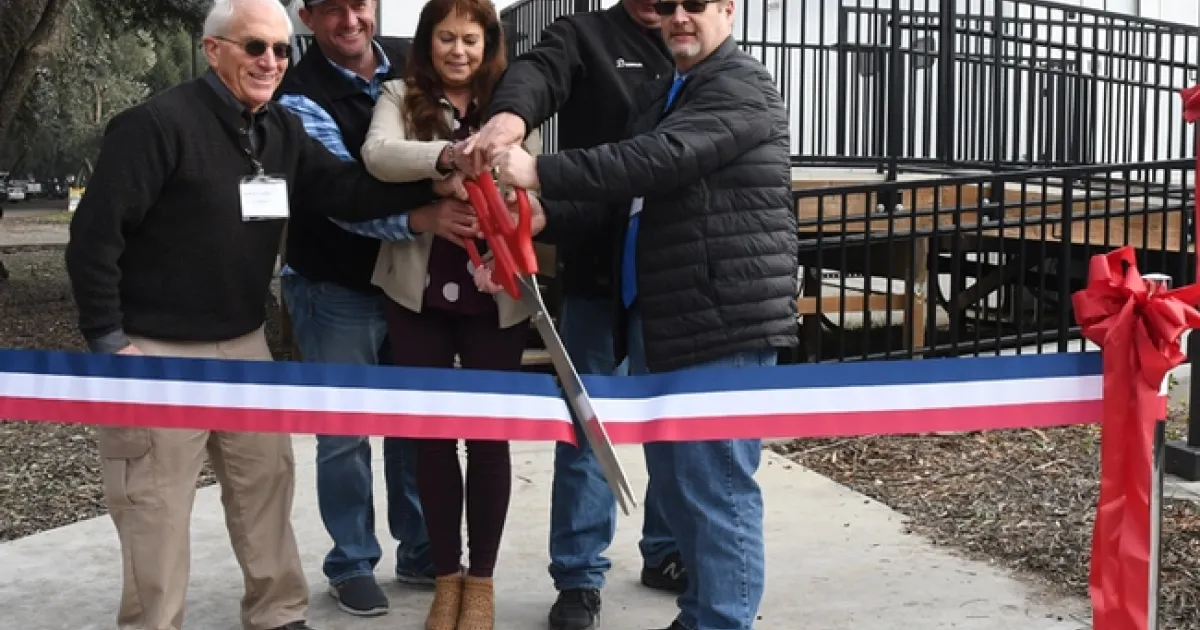 Park-Burris, of Jackie Park-Burris Queens, Palo Cedro--her family has worked with UC Davis researchers for more than 80 years--cut the ribbon with four other stakeholders: almond pollination consultant Robert Curtis of Carmichael, former director and associate director (now retired) of Agricultural Affairs, Almond Board of California; Kevin Adee of Bruce, S.D., president of the American Honey Producers' Association; Brad Pankratz of Can-Am Apiaries, Orland, Calif.; and Darren Cox of Cox Honey Farms, Logan, Utah, a past president of the American Honey Producers' Association.